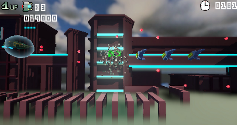 Nexus Storm, inspired by various shooter games (Sanxion, Battle Squadron, R-Type, etc.), is a side-scrolling shooter with different settings. The goal is to traverse each level while avoiding or destroying enemies and obstacles. The side-scrolling speed is adjustable. Enemies can approach from both sides of the screen in close formation, with which the player must avoid colliding.
